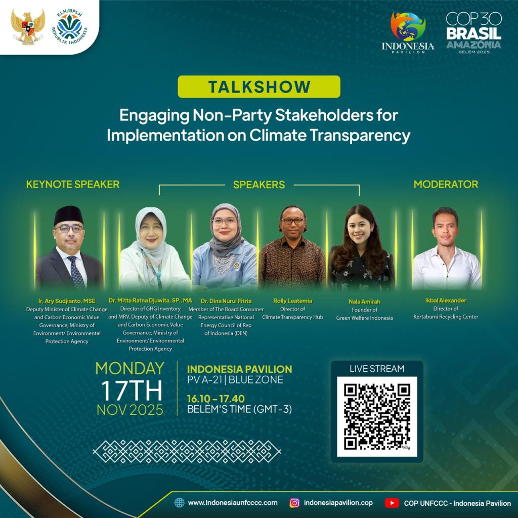 Climate transparency is no longer just a bureaucratic requirement; it is the currency of global trust. In this strategic session at the Indonesia Pavilion, the government and civil society united to deliver a clear message: Indonesia’s climate data is becoming more robust, inclusive, and credible through the active involvement of non-party stakeholders (NPS).