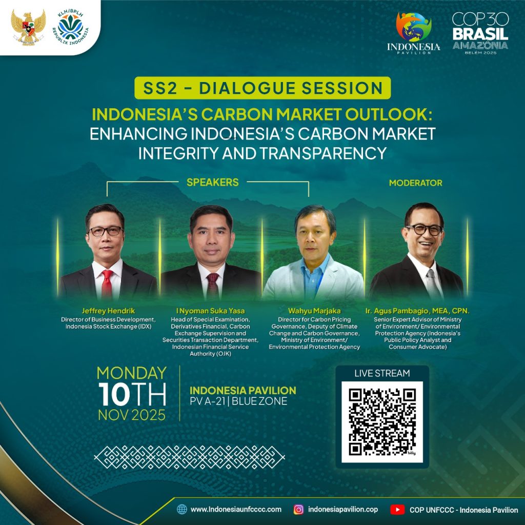 In this regard, the Indonesia Stock Exchange (IDX), through IDXCarbon, and the Financial Services Authority (OJK) carry crucial mandates that are highly relevant not only for Indonesia but also for the global community observing emerging carbon markets. IDX provides a robust trading platform that reflects Indonesia’s growing commitment to market efficiency and accessibility, while OJK ensures sound regulatory governance, investor protection, and financial stability. Their participation in this session is central to reinforcing investor confidence and signaling Indonesia’s readiness to contribute to international market linkages.