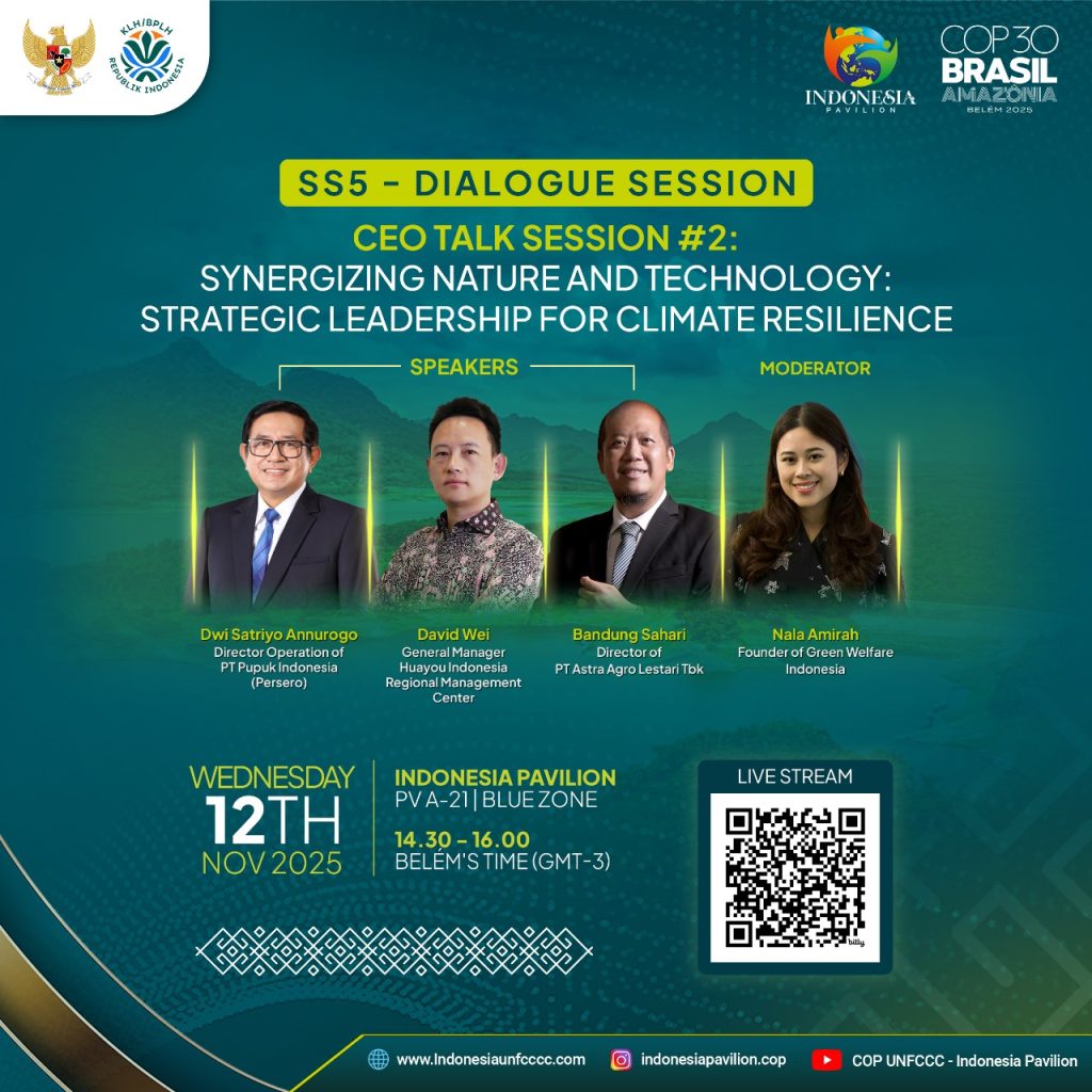 Indonesia's pathway toward Net Zero Emissions by 2060 requires an integrated approach that synergizes nature-based solutions with cutting-edge technology. While Indonesia's forests, mangroves, and peatlands serve as vital carbon sinks, technological innovation in industrial decarbonization, clean energy, and sustainable supply chains is equally critical. This session highlights how leading Indonesian corporations are harmonizing natural and technological strategies to build climate-resilient development, demonstrating that the convergence of these approaches strengthens Indonesia's climate integrity, supports its NDC targets, and enhances global competitiveness.