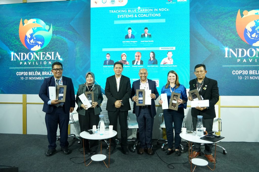 The day began with a landmark moment of institutional unity in Session C1, titled Tracking Blue Carbon in NDCs: Systems & Coalitions. Breaking down the silos, the Ministry of Marine Affairs and Fisheries (MMAF) and the Ministry of Environment (MoE) jointly launched the Indonesia Blue Carbon Ecosystem Roadmap and Action Guide. This roadmap is not just a document, it is a practical manual for integrating coastal ecosystems specifically seagrass and mangroves into Indonesia’s national climate targets in Second Nationally Determined Contribution (SNDC). The C1 session also discussed about :